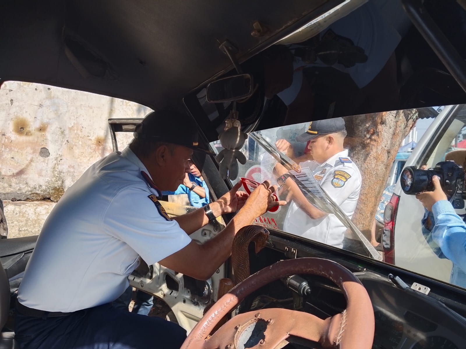 “Selanjutnya terhadap kendaraan kendaraan yang layak atau yang tidak layak diberi tanda dengan cara dipasangi stiker yang tempel di kaca depanya,” kata Rahayu, sambil menunjukkan stiker yang dipasang di kendaraan umum.